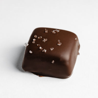 A fresh twist on a timeless classic. Golden caramel kissed with sea salt, enrobed in creamy chocolate for perfect balance.